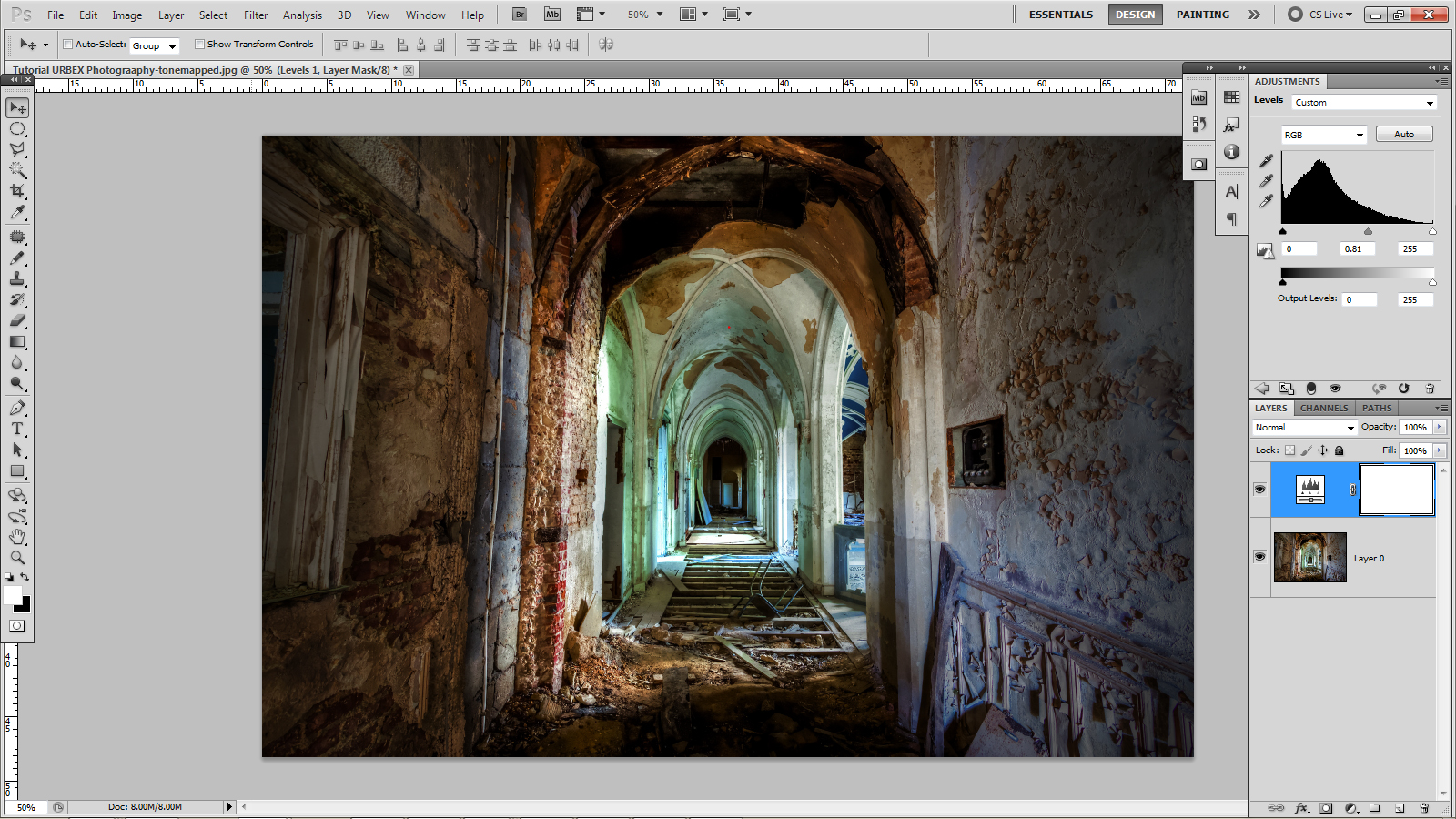 -> New Adjustment Layer -> Levels (sesuaikan kalkulasi histogrm-nya hingga dirasa cukup atau