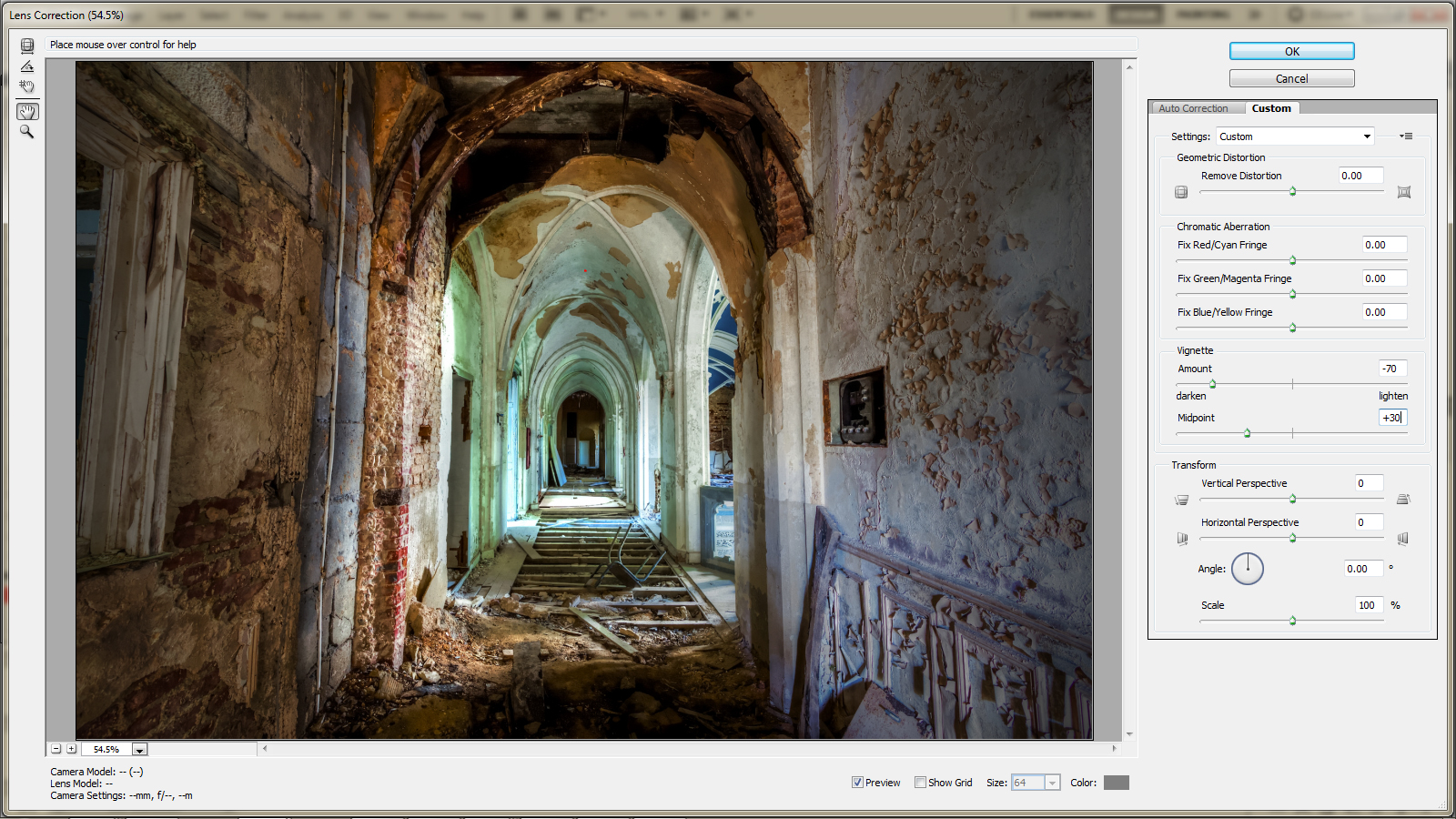 CS5), kemudian pilih Filter -> Lens Corretion -> Custom, sesuaikan